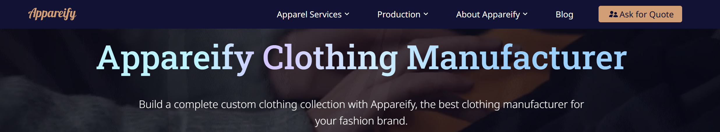 Overview: Appareify has rapidly become one of the most visible names in the apparel manufacturing industry. They offer an extensive range of services, from trend research to custom fabric development. Their platform is designed to be a one-stop-shop for private label brands, covering everything from activewear to streetwear and high-fashion pieces.