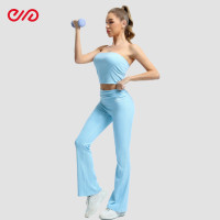 High-Waisted Flared Pants Manufacturer | Sky Blue Strapless Activewear Set supplier