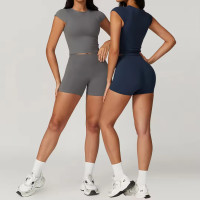 Includes a short T-shirt and matching gym shorts, providing a coordinated and fashionable workout outfit.