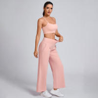 Custom Strappy Sports Bra and Wide-Leg Pants Athleisure Set Manufacturer | Sports Outfit Supplier