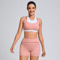 Custom Pink two-piece layered Sports Bra Manufacturer | Shorts with Pockets Supplier