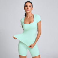 Custom Workout Short Sleeve Top Manufacturer | Gym Fitness Biker Shorts Supplier
